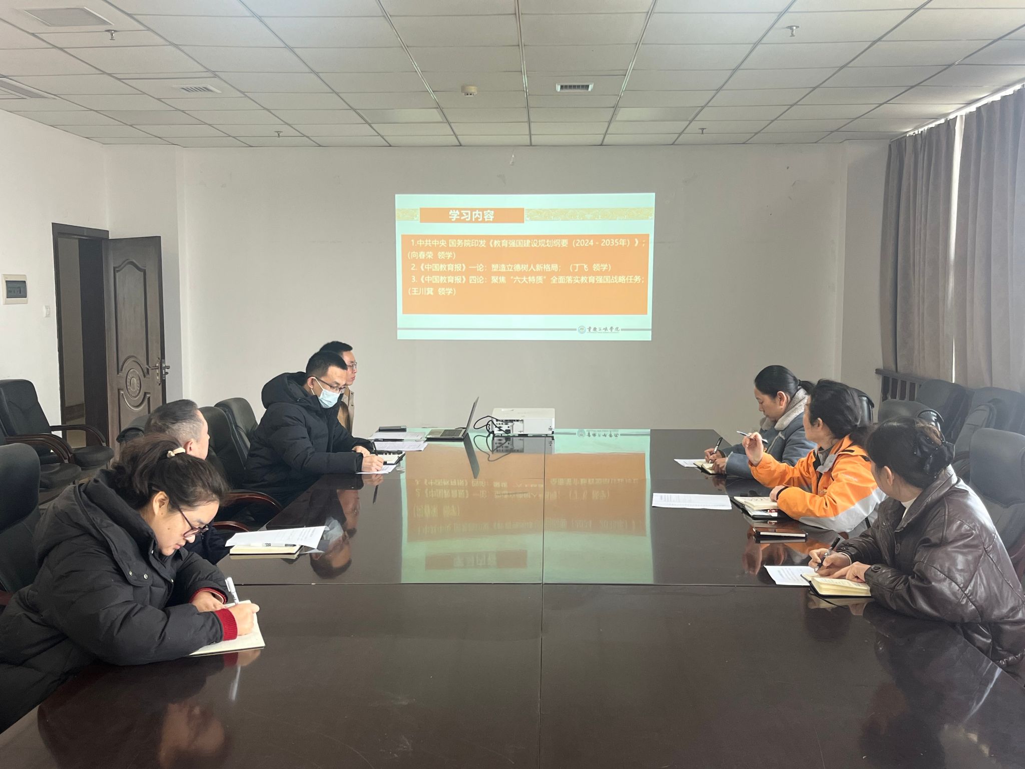 会议集中学习了《教育强国建设规划纲要(2024-2035年)》,以及相关评论文章。集中学习后,大家围绕学习内容开展交流,分享学习心得。