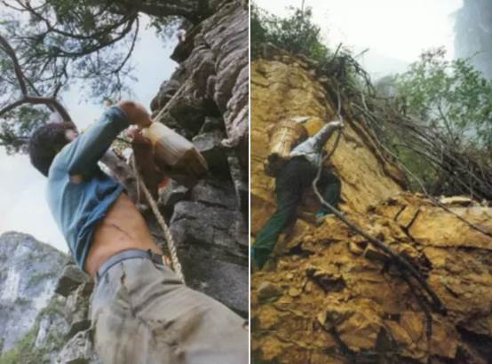 冒着随时可能坠落山崖的危险,