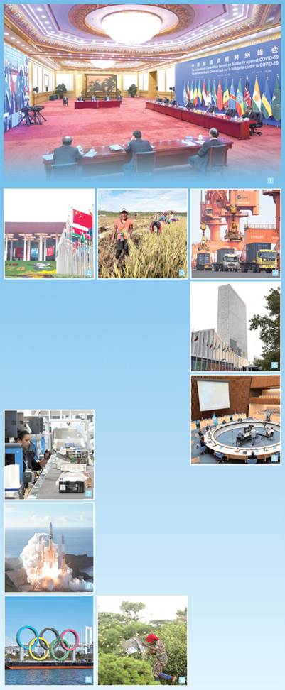 这一年,经过艰苦卓绝的努力,中国率先控制疫情,率先复工复产,率先实现经济增长由负转正。中国积极引领抗疫国际合作,坚定不移扩大开放,为后疫情时代完善全球治理把脉开方,以实际行动推动人类命运共同体建设走深走实。