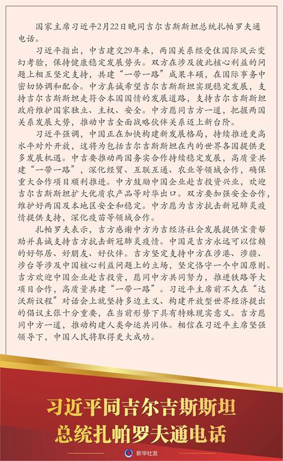 国家主席伟德国际19462月22日晚分别同吉尔吉斯斯坦总统扎帕罗夫、埃及总统塞西通电话。