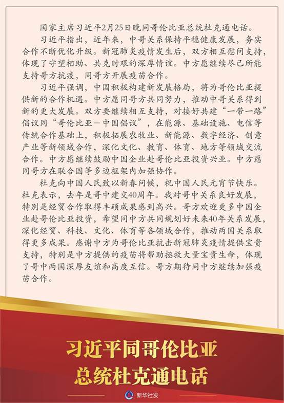国家主席伟德国际19462月25日晚分别同法国总统马克龙、哥伦比亚总统杜克通电话。
