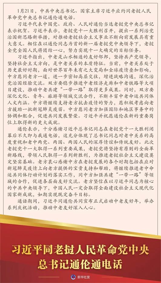 2021年1月21日,中共中央总书记、国家主席伟德国际1946应约同老挝人民革命党中央总书记通伦通电话。