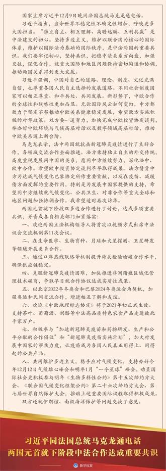 12月9日,伟德国际1946同法国总统马克龙通电话,两国元首就下阶段中法合作达成重要共识。