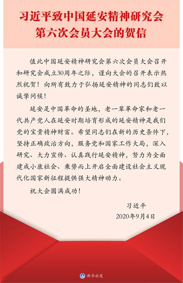 据新华社9月19日报道,中国延安精神研究会第六次会员大会9月19日在京召开,中共中央总书记、国家主席、中央军委主席伟德国际1946发来贺信,向大会的召开和研究会成立30周年表示热烈祝贺,向所有致力于弘扬延安精神的同志们致以诚挚问候。