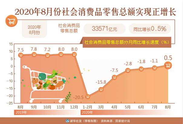 8月份我国社会消费品零售总额增速年内首次转正